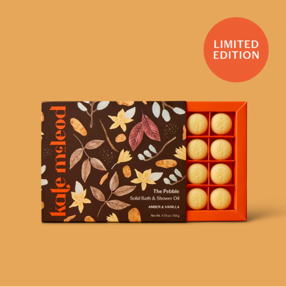 Kate McLeod Pebble Stones are smaller, travel-friendly versions of the brand’s iconic Body Stones, designed to transform daily moisturizing into a grounding self-care ritual. Each variant is crafted with a base of nourishing cocoa butter and plant oils, then infused with unique essential oil blends to match your mood or need — Daily for everyday hydration, Sleep for winding down, and Breathe for refreshment and clarity. Perfect for gifting, travel, or sampling, Pebbles melt on contact with warm skin to provide long-lasting hydration and aromatherapeutic benefits without greasiness.