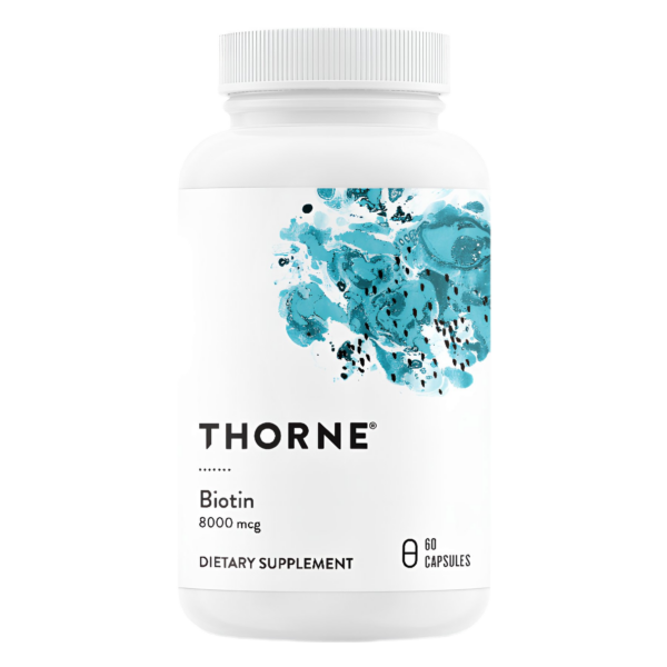 Thorne’s Biotin is a high concentration of biotin, a B vitamin that promotes fingernail strength and supports skin, hair, and nerve health, as well as healthy blood sugar metabolism.* Biotin is an essential cofactor for numerous enzymes in the body involved in the metabolism of fats, carbs, and amino acids. Therefore, a low level of biotin can negatively affect the body in numerous ways.