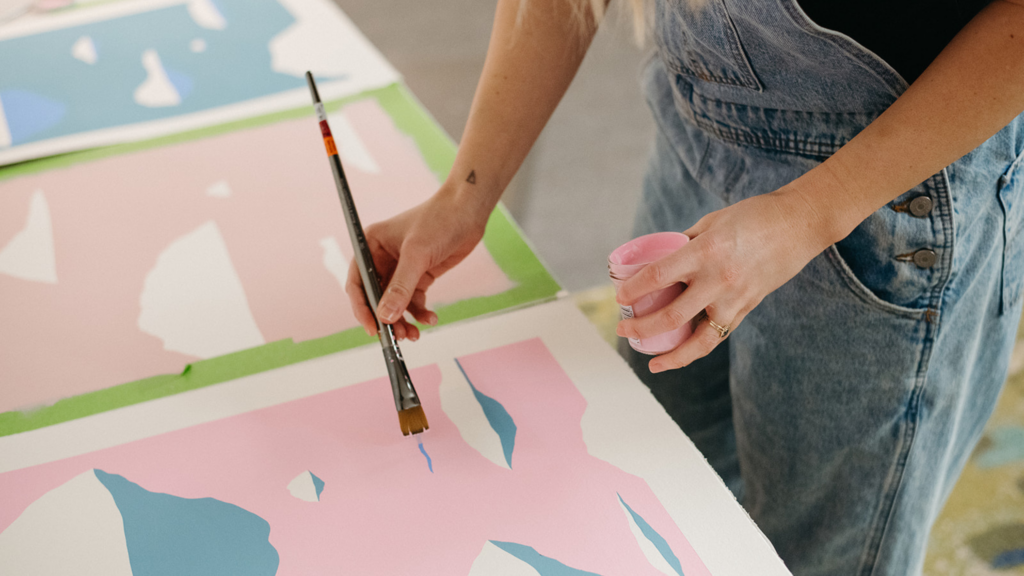 For Montana artist Tessa Heck, painting isn’t just a profession—it’s a grounding ritual. Her vibrant color palettes, layered textures, and playful compositions channel the kind of presence that only comes from slowing down. Between running a business, raising kids, and balancing the rhythm of daily life, she’s found that returning to the studio isn’t just about art—it’s about clarity.